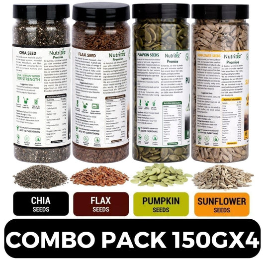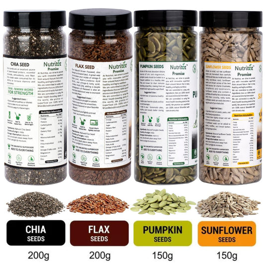 Nutritoz Natural Raw Combo Seeds Value Pack Chia Seeds, Flax Seeds, Pumpkin Seeds, Sunflower Seeds (700 g, Pack of 4)